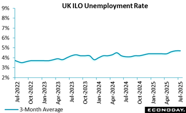 As vagas caíram no 37º período consecutivo, queda de 44.000 a 718.000, com a maioria das indústrias relatando menos aberturas, refletindo a possível cautela entre os empregadores sobre o recrutamento ou a contratação de substituição. Os salários continuaram a crescer de forma robusta, com ganhos regulares em 5,0%e mais no setor público (5,7%) do que no setor privado (4,8%), enquanto os ganhos totais, incluindo bônus, foram de 4,6%. O crescimento real dos salários permaneceu modesto em 0,9% (ajustou a CPIH), indicando o aperto remanescente da inflação no poder de compra doméstico.