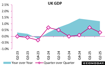 O PIB real por cabeça cresceu 0,2 % no trimestre e, 0,7 %, ano a ano, indicando que os ganhos de produção foram modestos quando o crescimento da população foi considerado. Principalmente, nenhuma revisões foi feita para os números de PIB publicados anteriormente, com as atualizações de dados mais abrangentes agendadas para agosto e 2025 de setembro de 2025 sob a política de revisões nacionais.