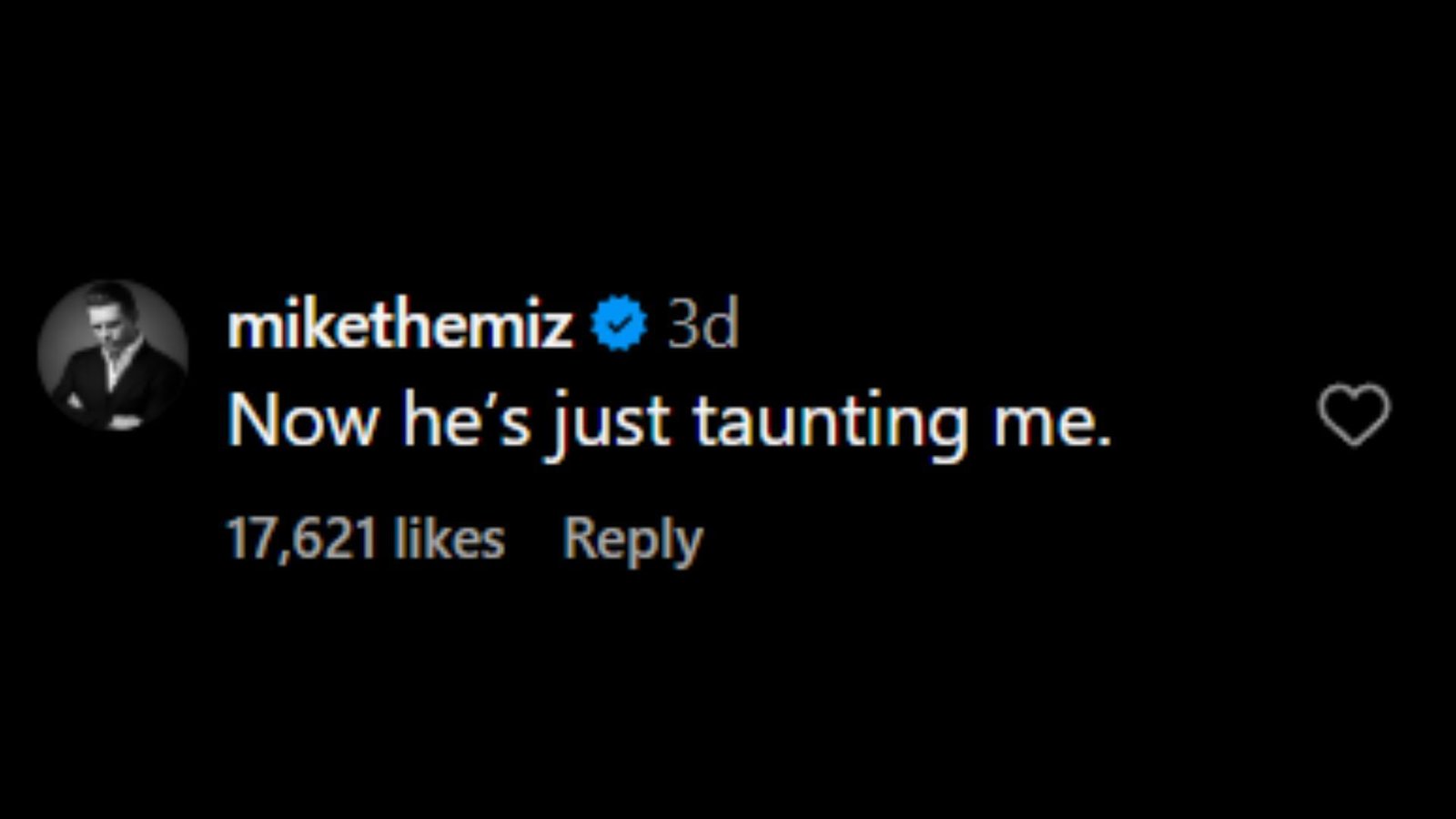 Captura de tela do comentário de The Miz [Image credits: WWE’s Instagram]