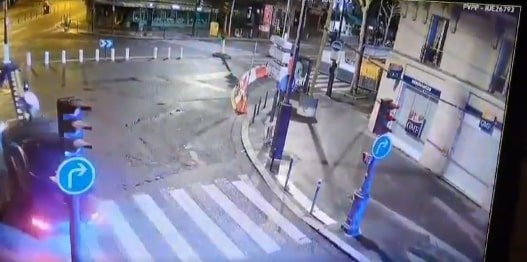 As filmagens de CCTV mostram o acidente preto da BMW em alta velocidade em um semáforo no centro de Paris.