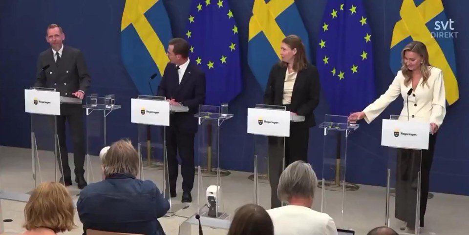 Lann foi filmada em seu pódio para uma conferência de imprensa ao lado do primeiro -ministro Ulf Kristersson.