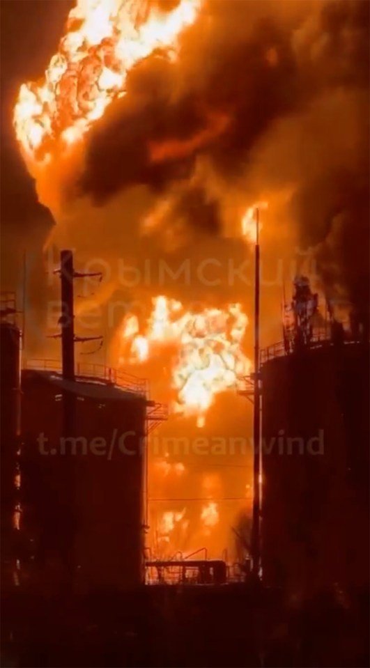 ucraniano drones atingiu a feodosia da Crimeia óleo depósito ontem, no território Vladimir Putin Anexado em 2014.