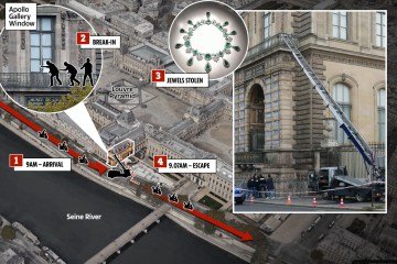 O assalto de sete minutos viu a gangue “altamente organizada” escalar a lateral do museu mundialmente famoso antes de invadir seu interior e fugir com um estoque de alguns dos principais tesouros do mundo.