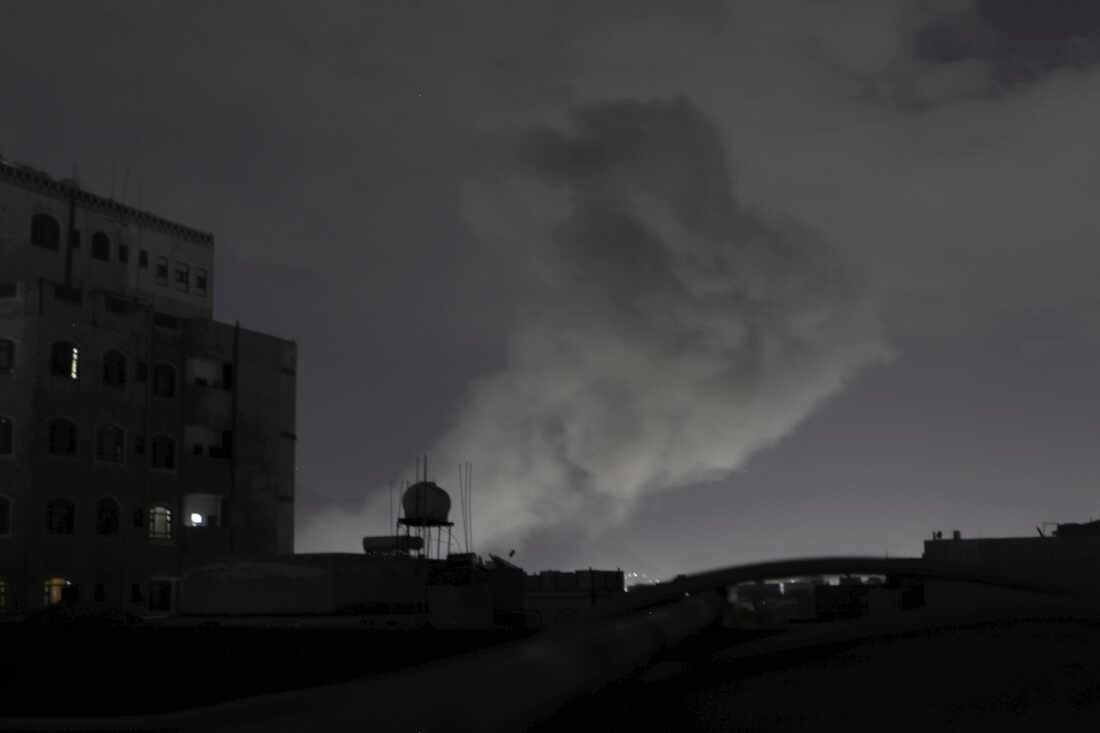 A fumaça sobe de um local supostamente atingido por ataques aéreos dos EUA em Sanaa, Iêmen, no sábado.