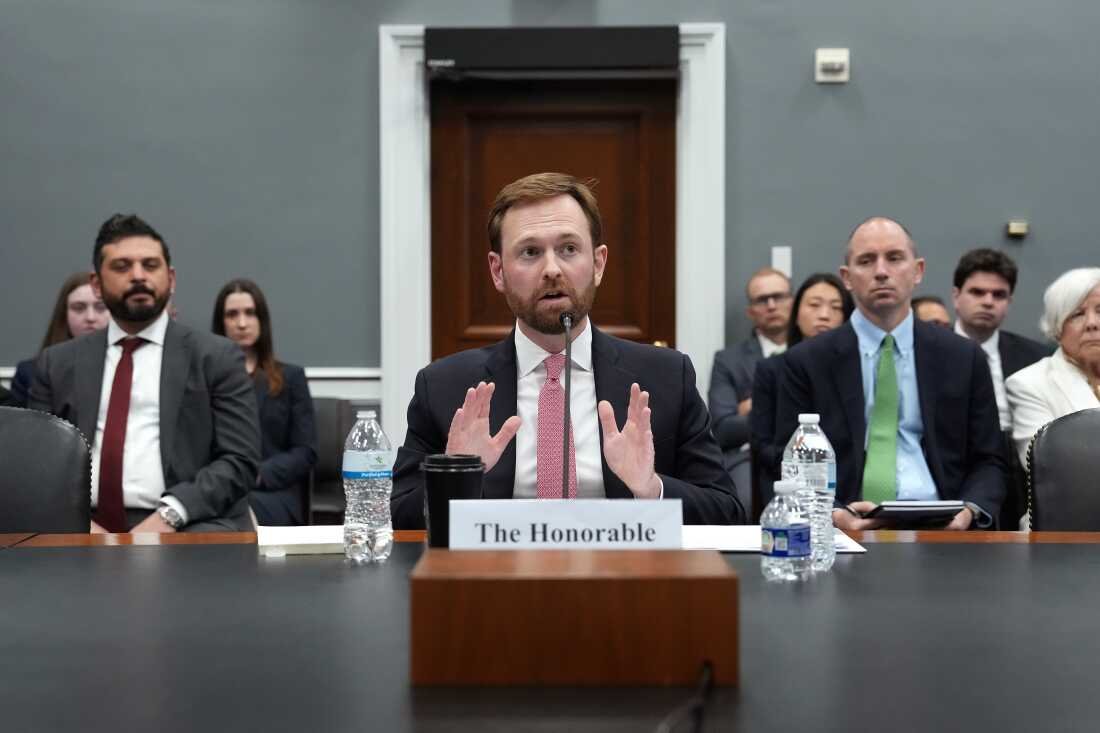 O presidente da Comissão Federal de Comércio Andrew Ferguson testemunha em Capitol Hill em 15 de maio de 2025 em Washington, DC