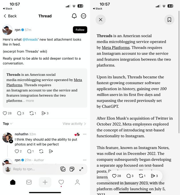 Threads testa uma maneira de compartilhar texto de formato longo na plataforma
