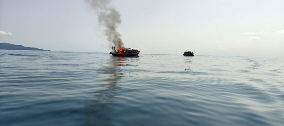 O tenente -coronel Nattapol Sinpunphol, vice -diretor do Departamento de Surat Thani Marine, disse que as equipes de resgate não conseguem se aproximar do barco por causa das chamas.