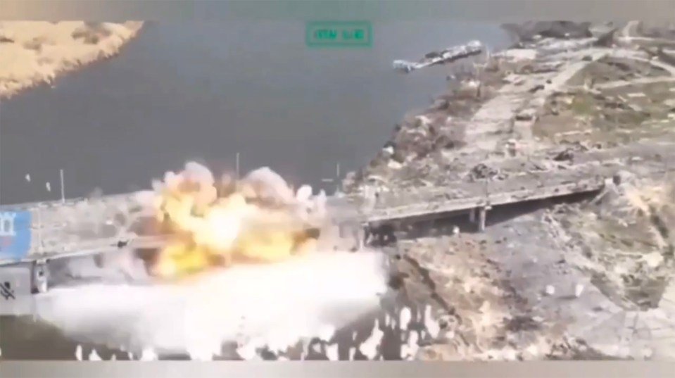 Este é o momento dramático da Ucrânia destrói uma ponte russa usada pelas tropas como uma rota de suprimento importante para a região de Kherson ocupada.